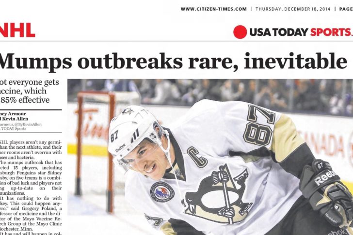 In 2014 USA Today reported about a mumps outbreak which infected a handful of NHL players…